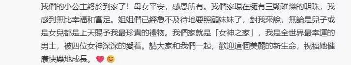 郭天王特别发文“性别不重要,女儿是上天赐予最珍贵的礼物”。