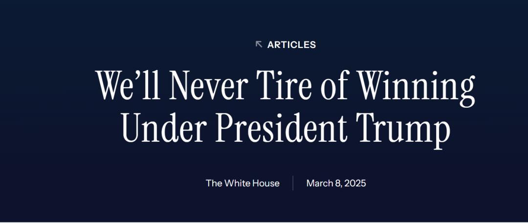 3月8号,白宫发布的新闻通稿标题是这样的:在特朗普总统的领导下,我们赢个不停。