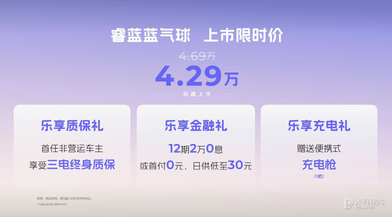 【太平洋汽车 新车频道】9月13日,睿蓝汽车旗下的蓝气球正式上市,官方售价4.69万元配资专业股票理财,限时价4.29万元。蓝气球定位微型车,造型主打卖萌,内部是2+2座位设计,采用纯电动力驱动,续航里程可达210公里。